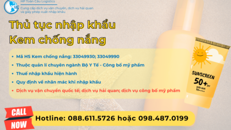 Thuế, chính sách mặt hàng, thủ tục nhập khẩu, chi phí nhập khẩu, dịch vụ nhập khẩu kem chống nắng