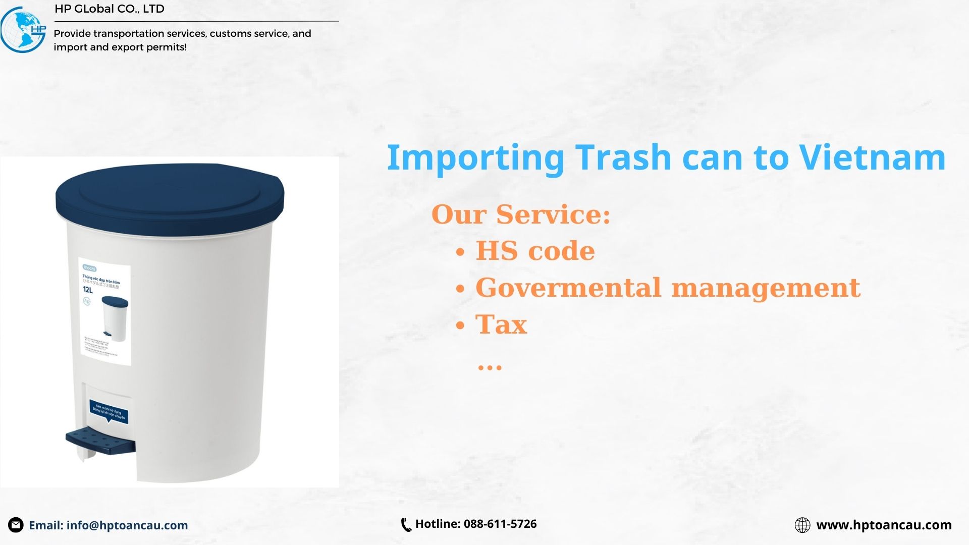 • Select HP Global as the freight forwarder/customs broker for your shipments import Trash can into Vietnam