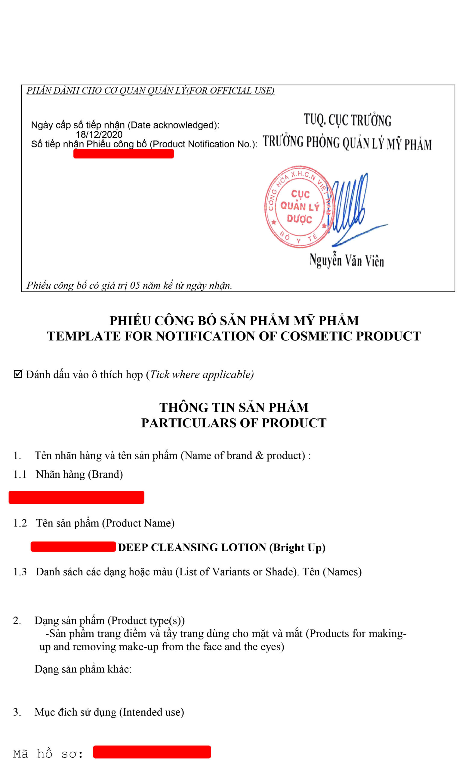 Cosmetic product is under management of the Ministry of Health. Accordingly, prior to go the market, the cosmetic product need to have Notification of Cosmetic Product which have Product Notification No. issued by Drug Administration of Vietnam under Ministry of Heath.