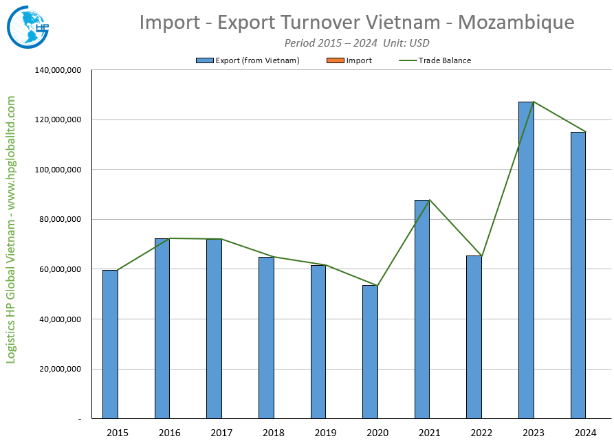 Vietnam and Mozambique are important trading partners. In this article, HP Global overview some key points related to transportation of cargo import from Mozambique to Vietnam and export from Vietnam to Mozambique.