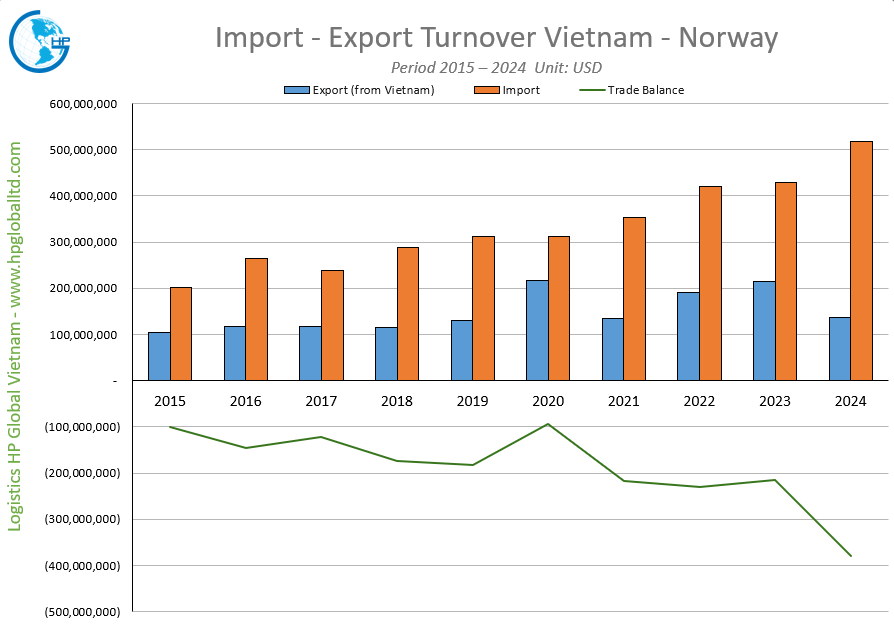 Vietnam and Norway are important trading partners. In this article, HP Global overview some key points related to transportation of cargo import from Norway to Vietnam and export from Vietnam to Norway.