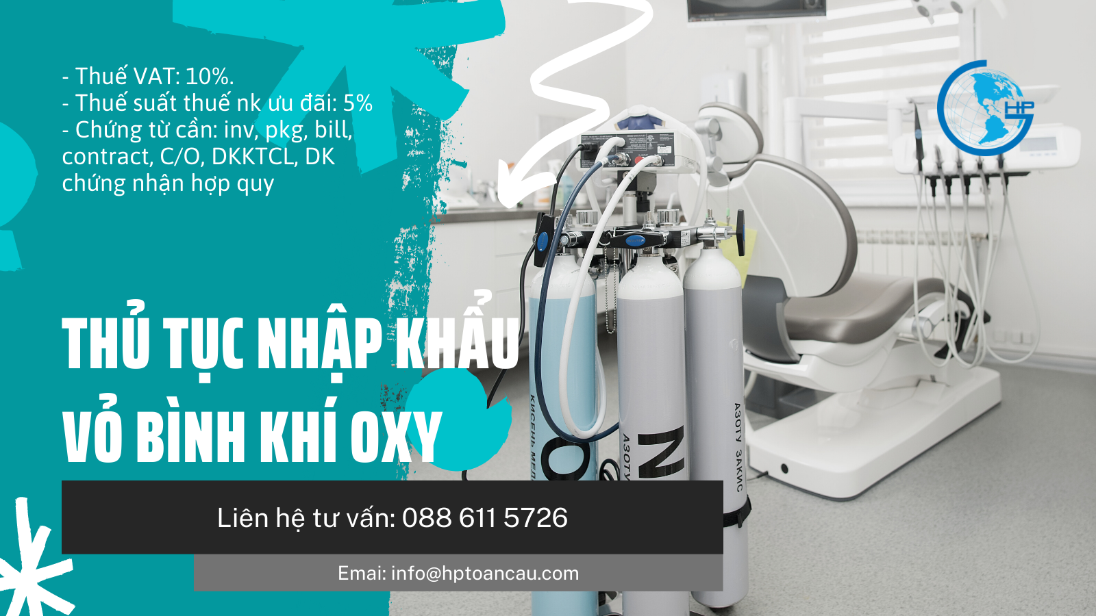 Hãy liên lạc ngay với HP Toàn Cầu nếu bạn muốn được tư vấn về thuế nhập khẩu hoặc thủ tục nhập khẩu Vỏ bình khí oxi hay để nhận báo giá, dự toán thời gian vận chuyển