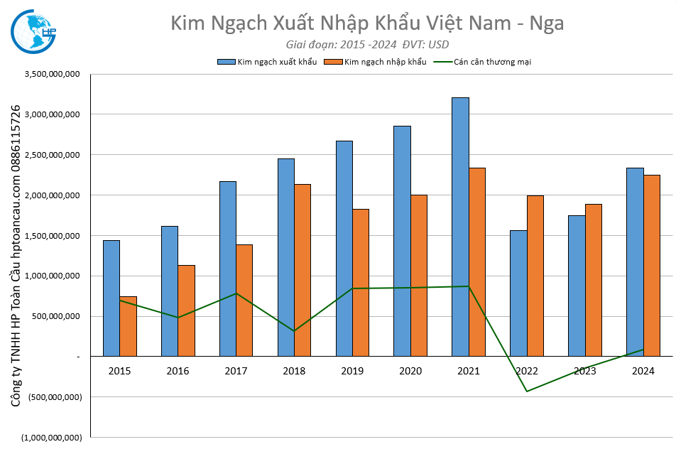 Kim ngạch xuất khẩu từ Nga về Việt Nam: